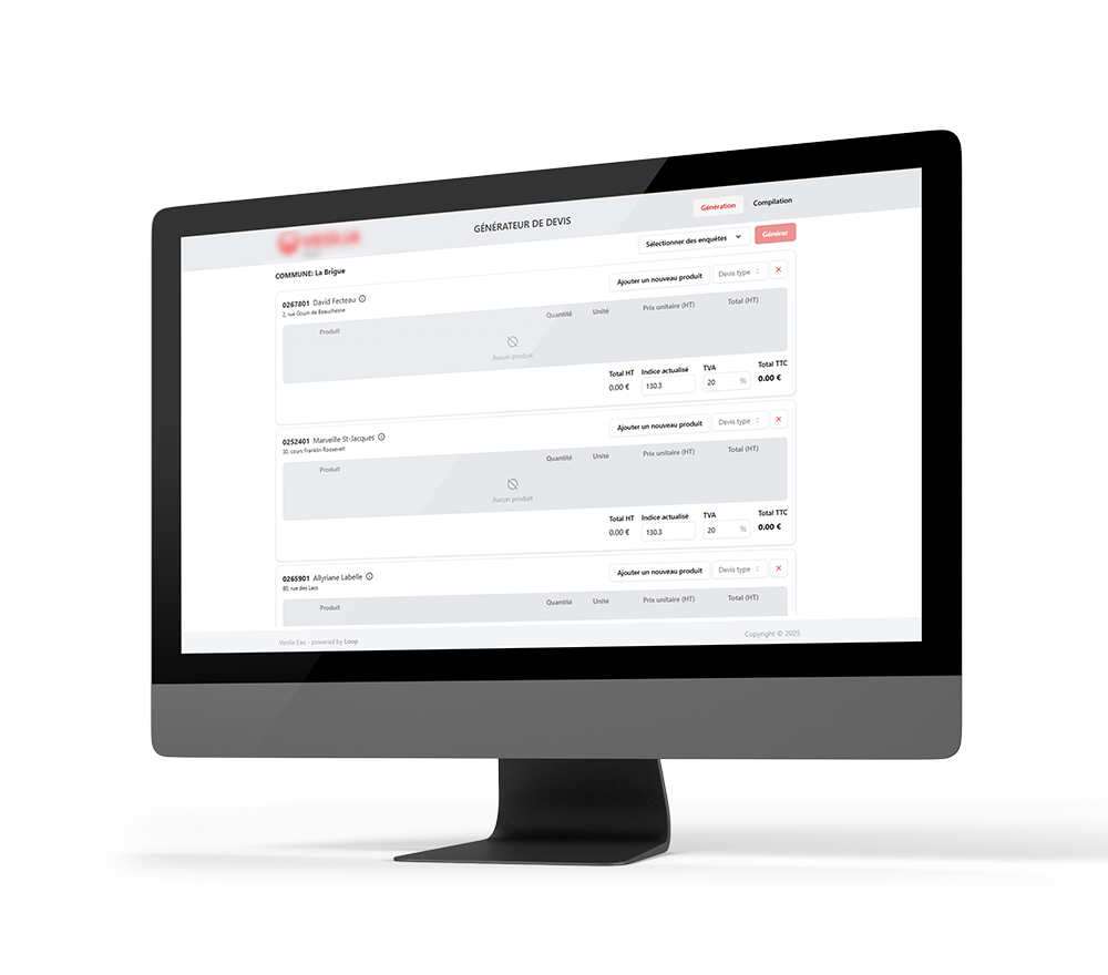 Des experts réalisent des enquêtes sur la qualité des installations hydrauliques à raison de plusieurs dizaines par jour. Au terme de ces enquêtes, un devis doit être généré sous un format image pour pouvoir être intégré dans la suite du processus. C'est cette génération qui est actuellement problématique car aucune automatisation n'est mise en place et que le client est contraint dans la suite Google.