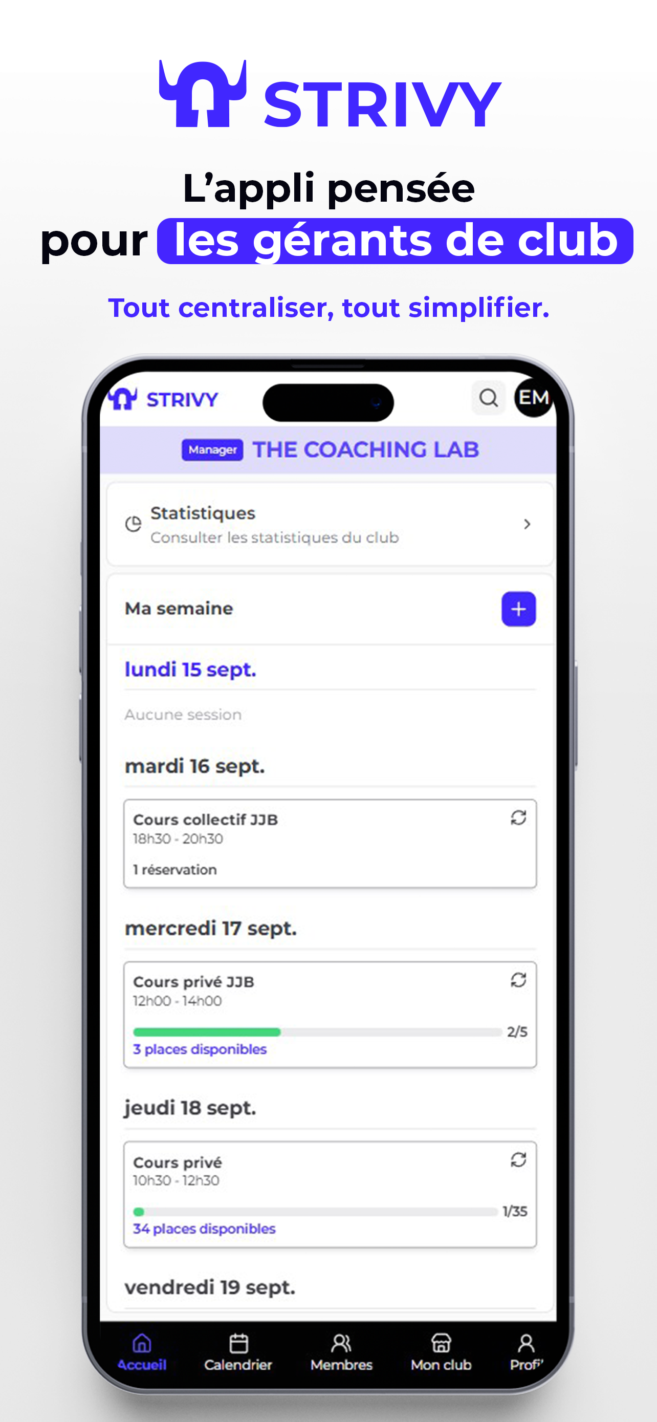Membre : réservez vos cours et suivez vos progrès. L'application est votre passeport d'entraînement.